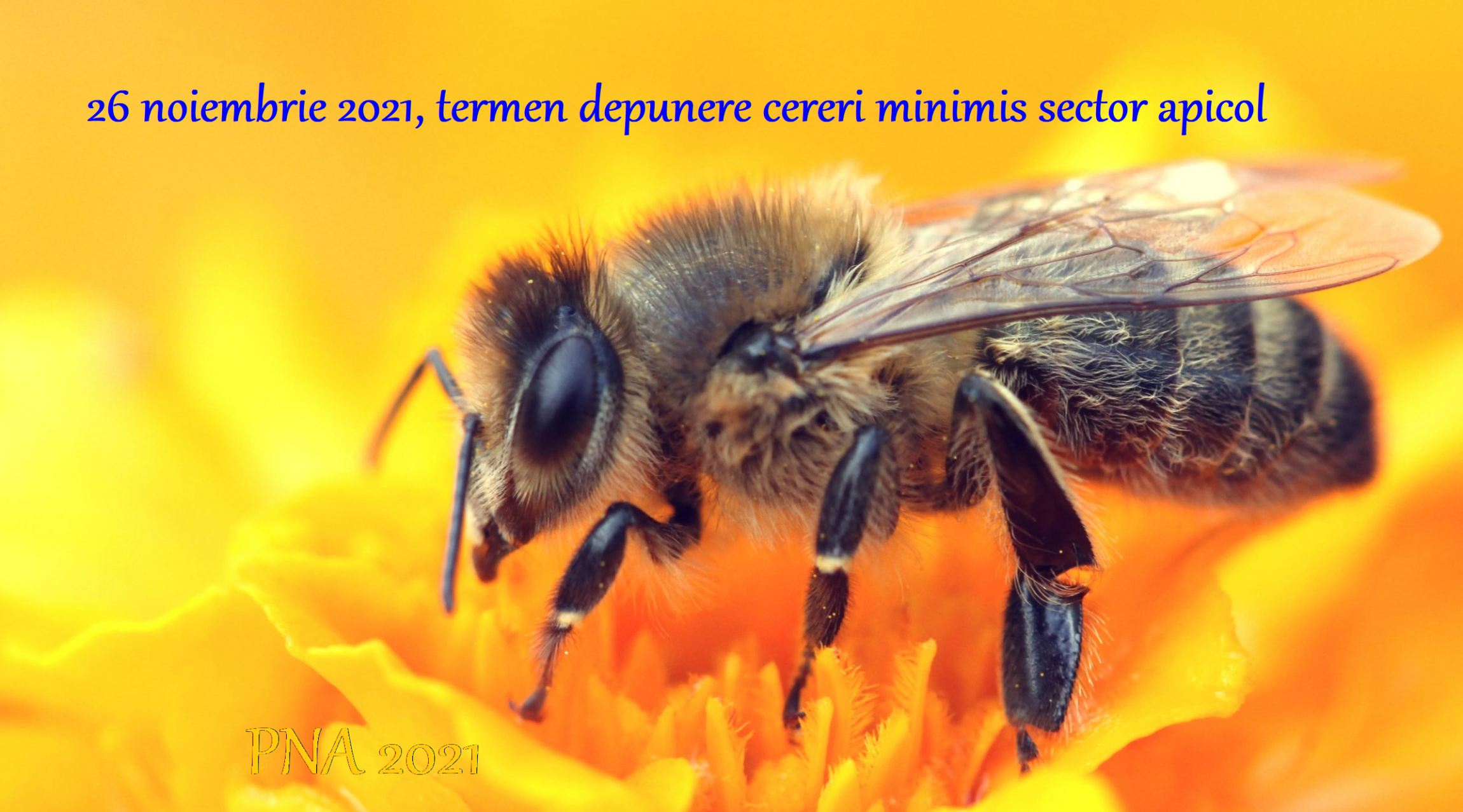 Agenția de Plăți și Intervenție pentru Agricultură (APIA) informează apicultorii că în perioada 19 – 26 noiembrie 2021 inclusiv se depun cereri de acordare a ajutorului de minimis pentru compensarea efectelor hidrometeorologice nefavorabile manifestate în perioada martie – mai 2021 asupra sectorului apicol, în conformitate cu Hotărârea Guvernului nr. 1219/17.11.2021.