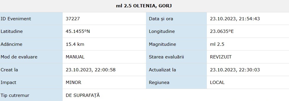 Pământul continuă să se miște în Gorj. Alte două cutremure slabe au avut loc, luni seară, în interval de 30 de minute.