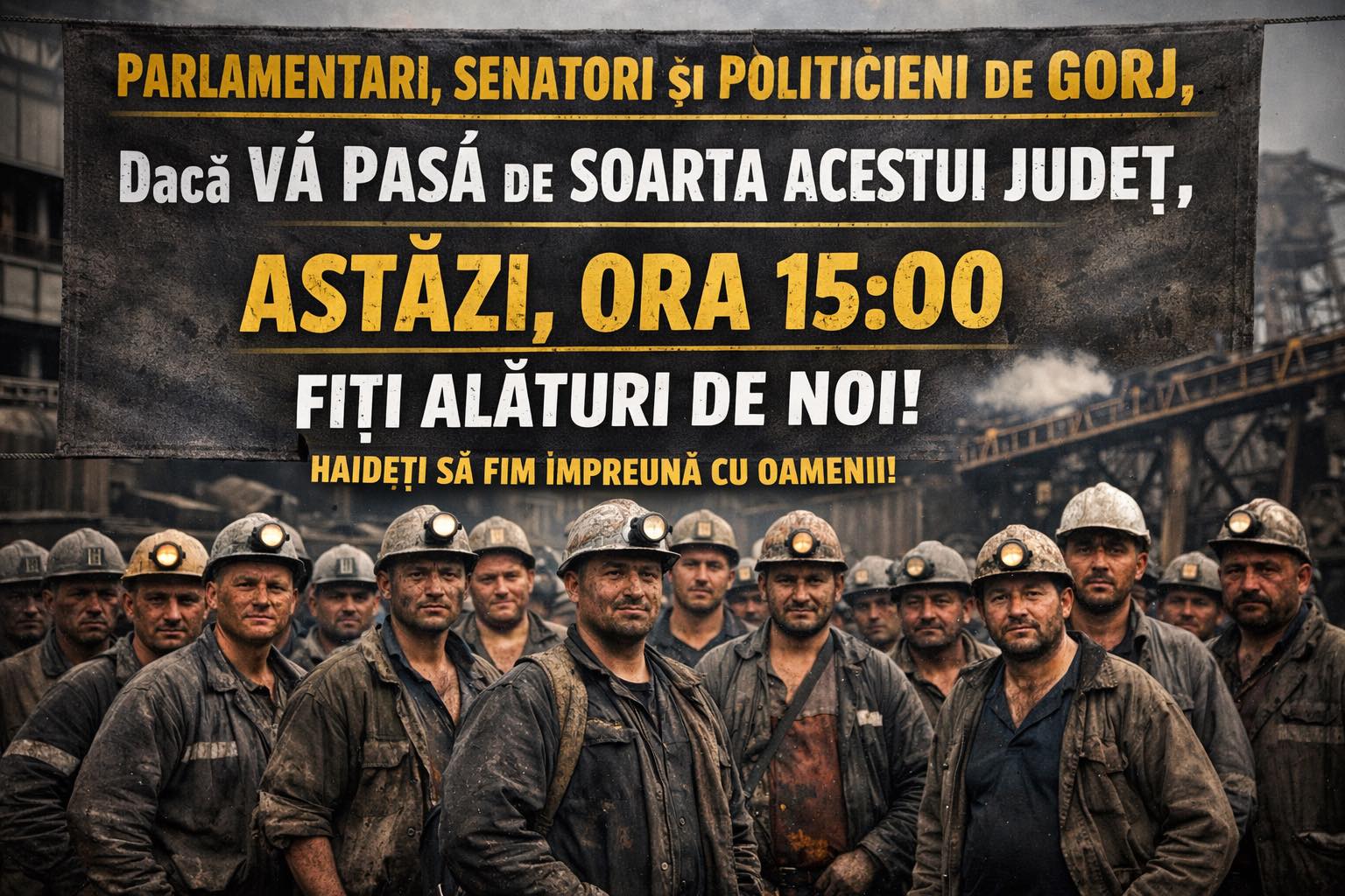 Liderii politici din Gorj sunt chemați să participe la protestul angajaților Complexului Energetic Oltenia. Astăzi, de la ora 15:00, minerii și energeticienii vor ieși din nou în stradă, pentru a treia zi consecutiv, într-o încercare de a stopa concedierile și închiderea societății.
