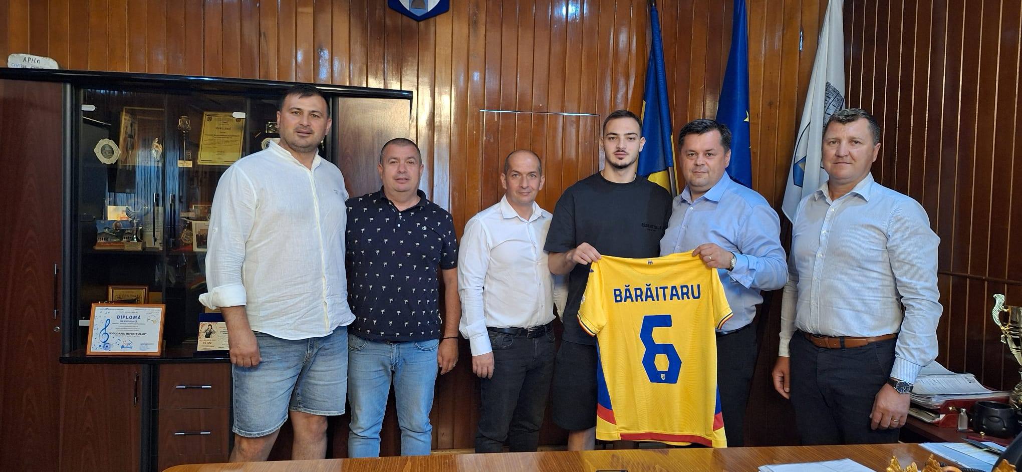 Tânărul fotbalist Mario Bărăitaru, unul dintre componenții Naționale României Under 19, fotbalist de excepție al României, a făcut, joi, o vizită la Primăria Târgu-Jiu.