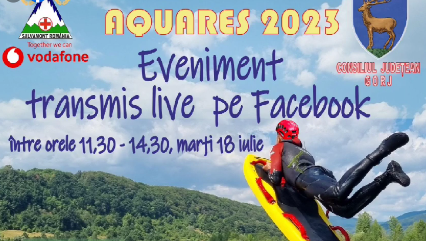 Salvamont România și Consiliul Județean Gorj, în parteneriat cu Vodafone România, organizează exercițiul „Aquares 2023”, primul stagiu de pregătire profesională a salvatorilor în salvarea acvatică cu specific montan pentru salvatorii cu acest profil din cadrul echipelor Salvamont – Salvaspeo.