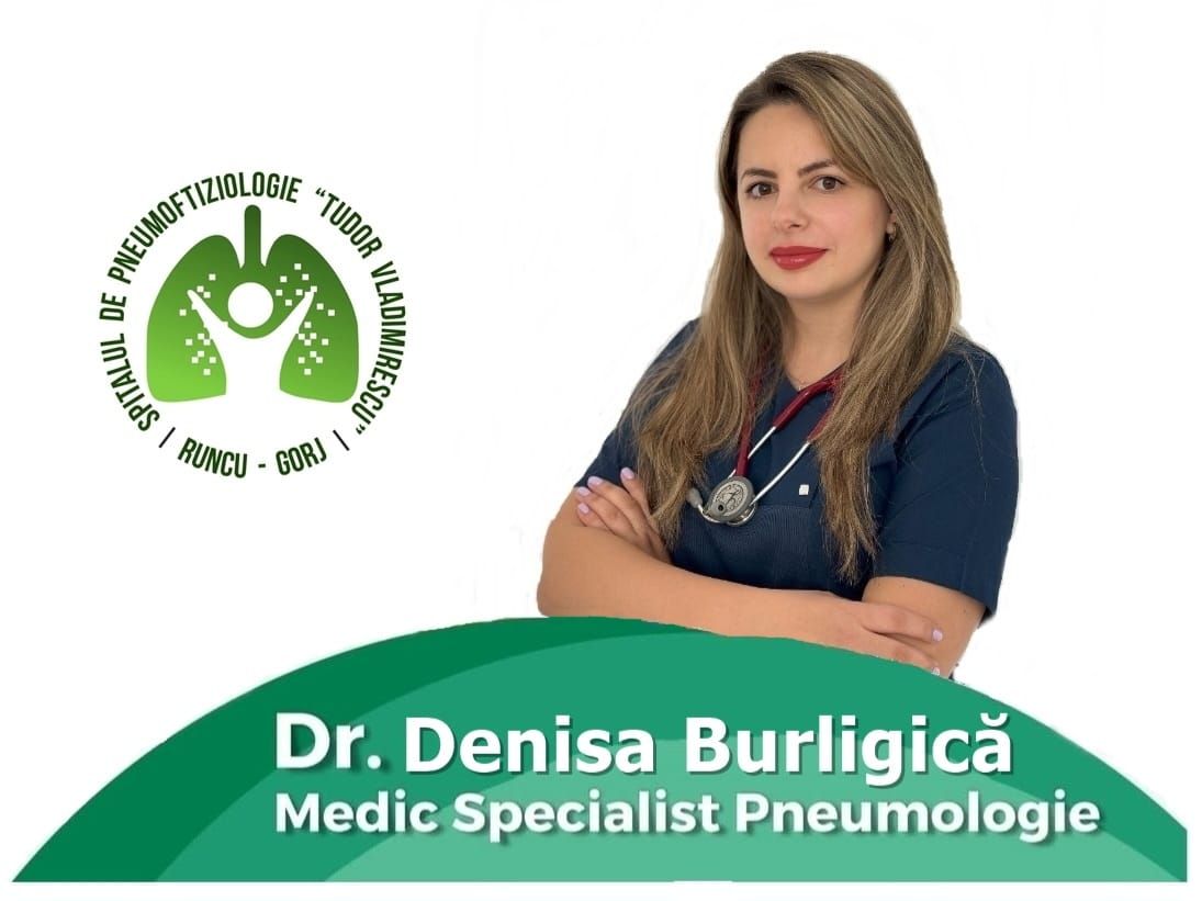 - ”Suntem bucuroși să anunțăm extinderea echipei medicale din cadrul Spitalului de Pneumoftiziologie Tudor Vladimirescu Runcu, Gorj, pentru a oferi pacienților acces la servicii de Pneumologie de calitate. Dr. Denisa Burligică, medic specialist pneumolog, s-a alăturat comunității noastre medicale aducând entuziasmul, energia și motivația tinereții și începutului de carieră alături de cunoștințe…
