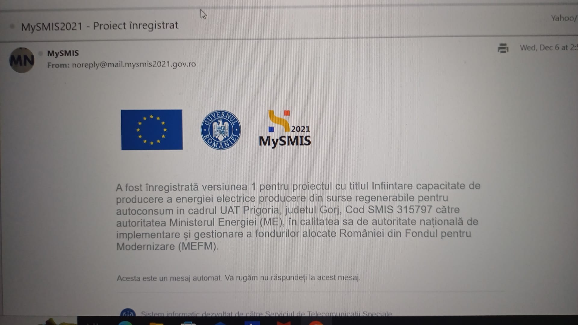”Încă un proiect pe fonduri europene a fost depus cu succes în vederea construirii unui parc fotovoltaic în comuna Prigoria. Proiectul „Înființare capacitate de producere a energiei electrice produsă din surse regenerabile pentru autoconsum în cadrul UAT Prigoria, Jud.Gorj, va avea valoarea de 950131,66 lei, numărul de panouri fotovoltaice 240 de bucăți și…