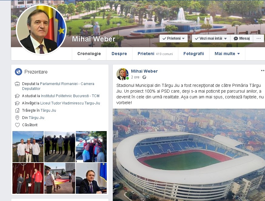 Pe paginile de socializare, liderii PSD Gorj, Mihai Weber, Cosmin Popescu și Florin Cârciumaru, au publicat mesaje prin care se laudă cu noul stadion municipal de la Târgu-Jiu.