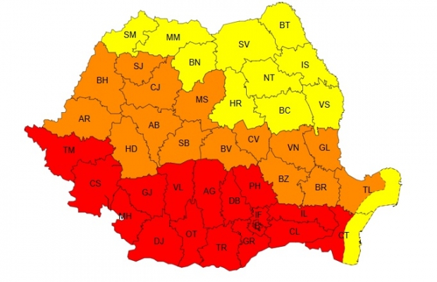 România traversează cel mai intens val de căldură din această vară, Administrația Națională de Meteorologie emițând multiple avertizări de Cod Roșu, Cod Portocaliu și Cod Galben, valabile în intervalul 26 – 28 iulie.