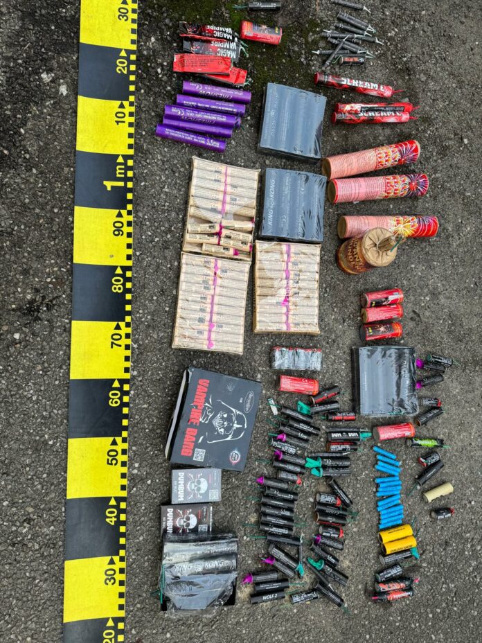 În Târgu Jiu, a fost identificat un tânăr din comuna Dănești, în timp ce deținea, în scopul comercializării, cantitatea de aproximativ 40 de kilograme de articole pirotehnice (tip petarde) din categoria F1, P1 și F4 în valoare totală de aproximativ 3.500 lei, fără a deține documente de proveniență.