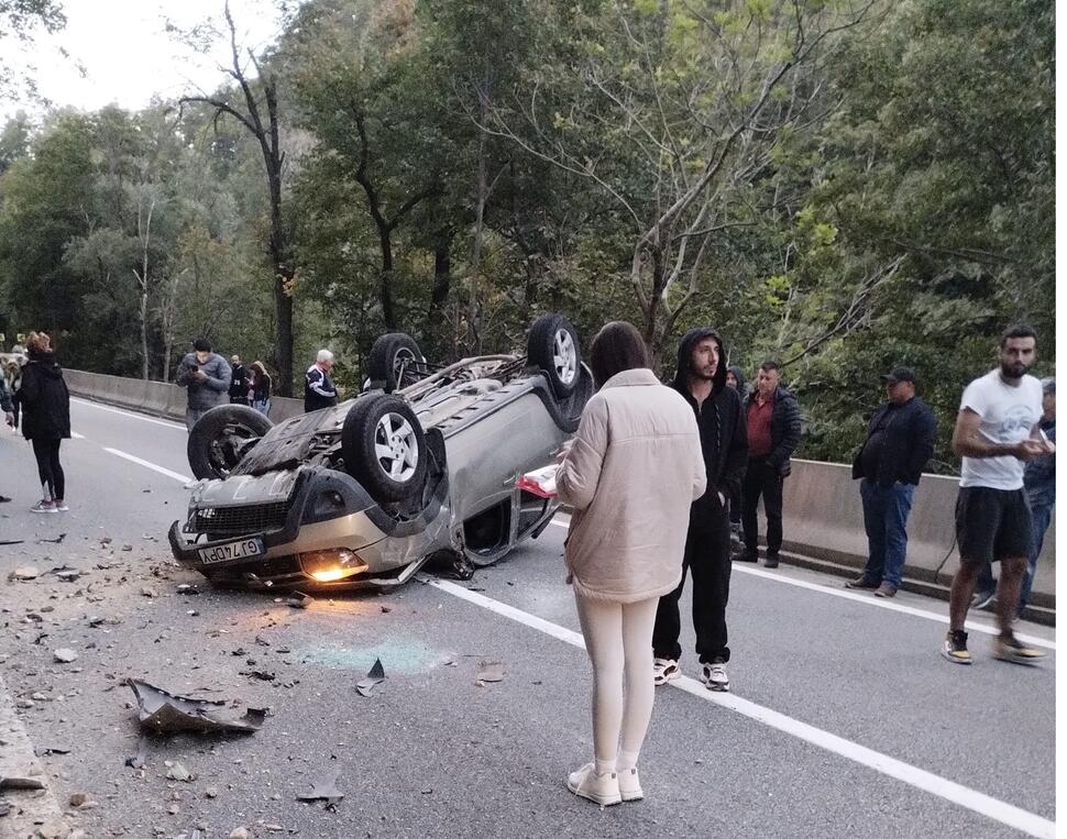 Accident spectaculos, sâmbătă, pe Defileul Jiului. Un șofer din județul Gorj s-a răsturnat cu mașina.