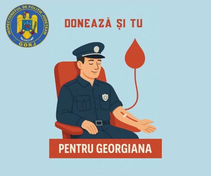 „Astăzi, polițiștii gorjeni au donat sânge – Hai și tu! Diaconescu Georgiana Izabela, o tânără de doar 23 de ani, are mare nevoie de ajutorul nostru, iar viața ei depinde de fiecare dintre noi. Polițiștii din Gorj s-au mobilizat și donează sânge astăzi și mâine pentru Georgiana. Te rugăm…