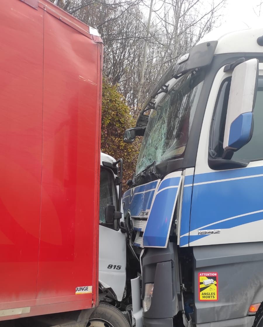 Două mașini de mare tonaj s-au ciocnit, miercuri la prânz, în comuna Bumbești-Pițic, satul Poienari. Un șofer de 23 de ani a rămas încarcerat, fiind ulterior transportat la spital.
