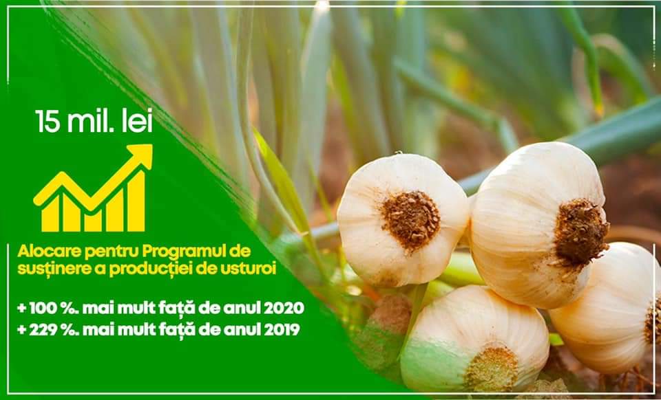 Valoarea maximă a sumelor care se pot plăti fermierilor este de 14.617,5 lei pe hectar, echivalentul a 3.000 de euro. Programul de ajutor de minimis pentru cultura de usturoi a ajuns în 2021 la cel de-al treilea an.
