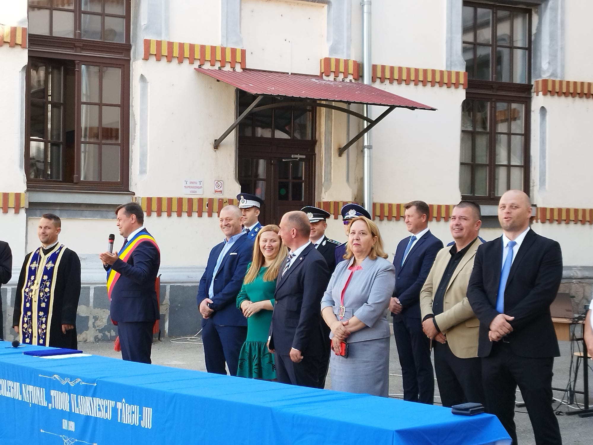 Primarul Târgu-Jiului, Marcel Romanescu și inspectorul școlar general, Marcela Mrejeru, au participat, luni, la festivitatea de deschidere a noului an școlar la Colegiul Național “Tudor Vladimirescu”.