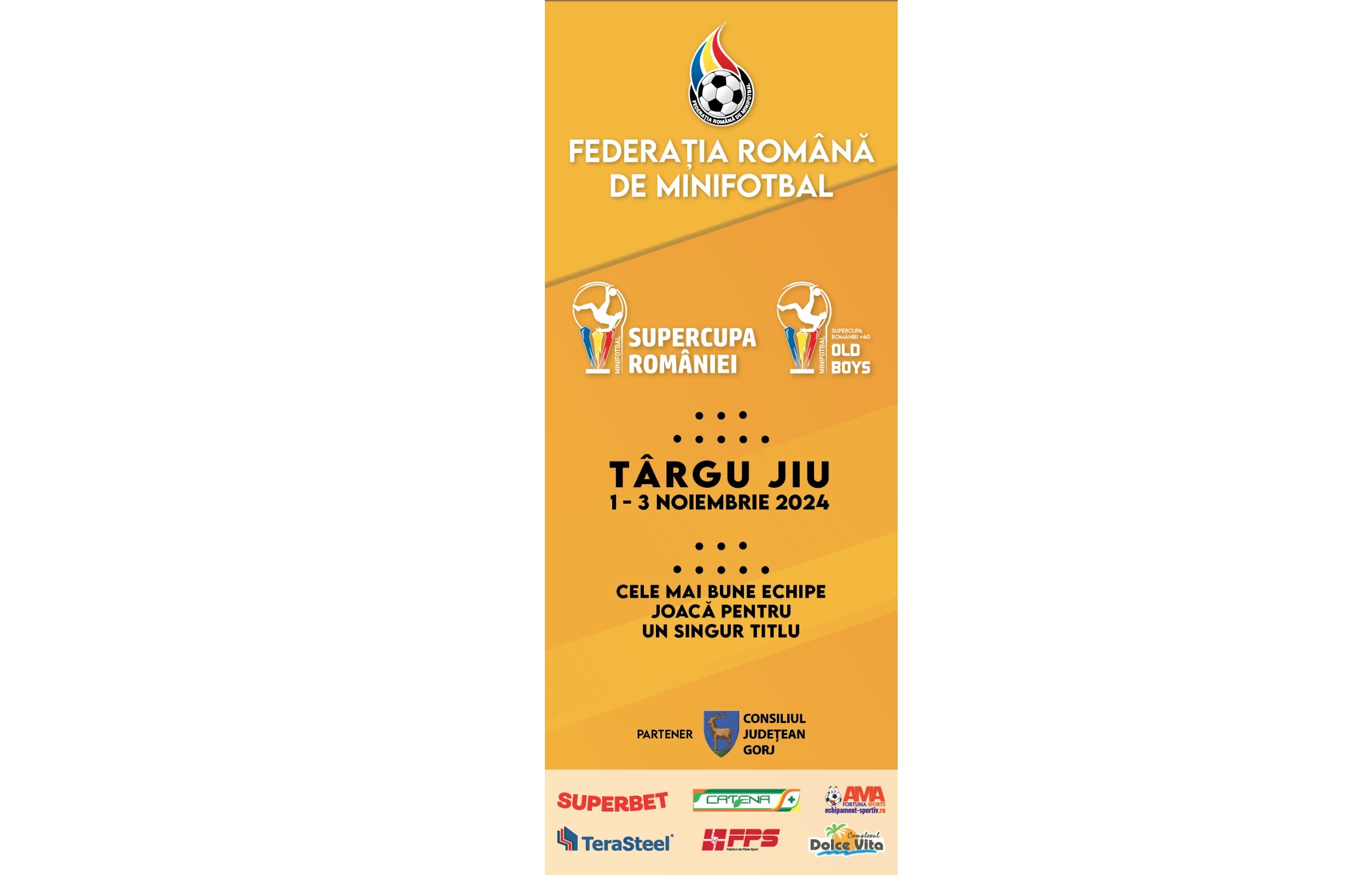 Două competiții majore, Supercupa României și Supercupa Old Boys la minifotbal, vor avea loc în perioada 1-3 noiembrie la Târgu-Jiu.