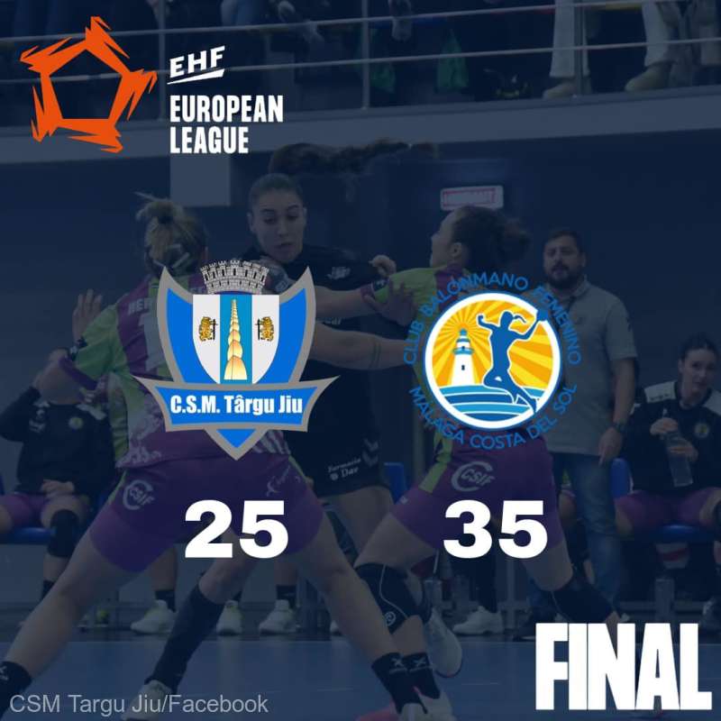 CSM Târgu Jiu a fost învinsă de Costa del Sol Malaga cu scorul de 35-25 (16-13), duminică, pe teren propriu, într-un meci din Grupa D a competiţiei feminine de handbal EHF European League.