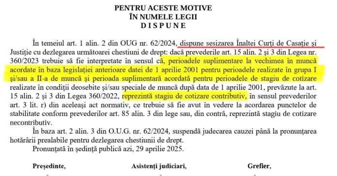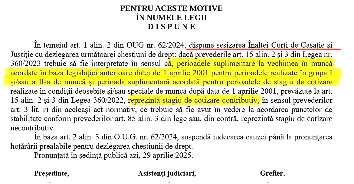 Legea nr.197/2021 poate reveni prin Justiție. Tribunalul Bistrița-Năsăud tocmai a sesizat Înalta Curte pentru a lămuri dacă noua lege a pensiilor trebuie să recunoască drept stagiu contributiv munca grea, plătită suplimentar, în condiții speciale, anunță deputatul Radu Miruță, președintele USR Gorj.