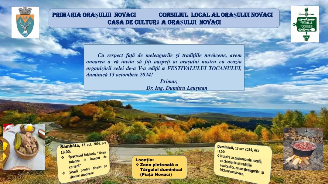 Cea de-a V-a ediție a Festivalului Tocanului va avea loc, la Novaci, în perioada 12-13 octombrie.
