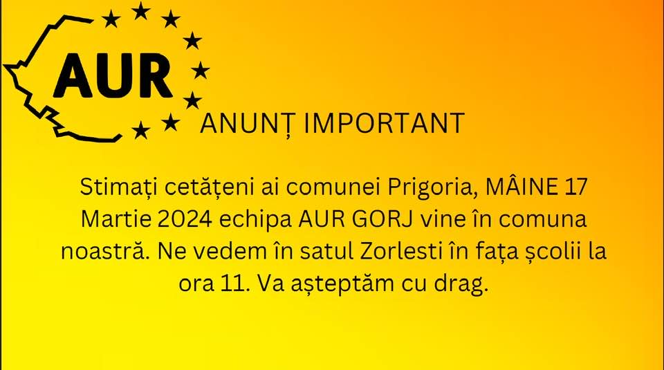 „Stimați cetățeni ai comunei Prigoria, mâine, 17 martie 2024, echipa AUR Gorj vine în comuna noastră. Ne vedem în satul Zorlești, în fața școlii, la ora 11:00. Vă așteptăm cu drag” a transmis Iuliana Iliescu.
