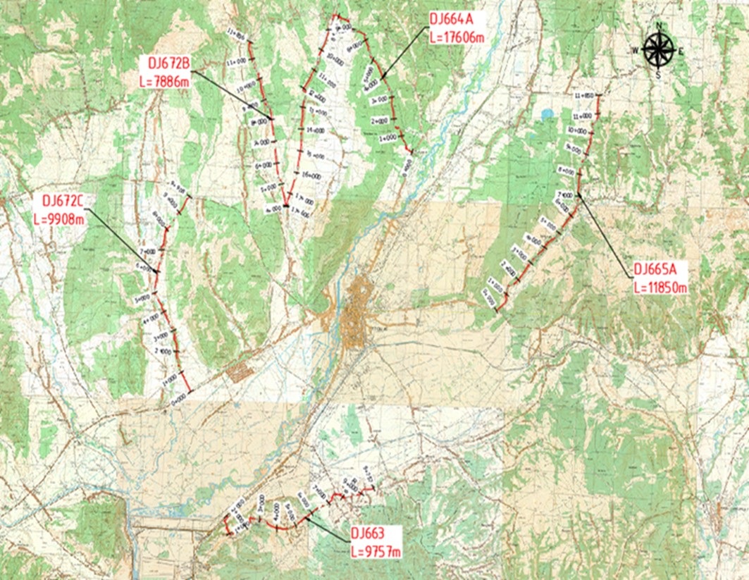 Este vorba despre: DJ 663: Dâmbova→Cârbești→Tâlvești → Urechești; DJ 672C: Tălpășești → Stroiești → Răchiți → Runcu; DJ 672B: Ursați→Frătești→Suseni; DJ 665A: Bălănești → Voiteștii din Vale → Grui și DJ 664A: Turcinești → Rugi → Curpen → Stănești → Ursați.