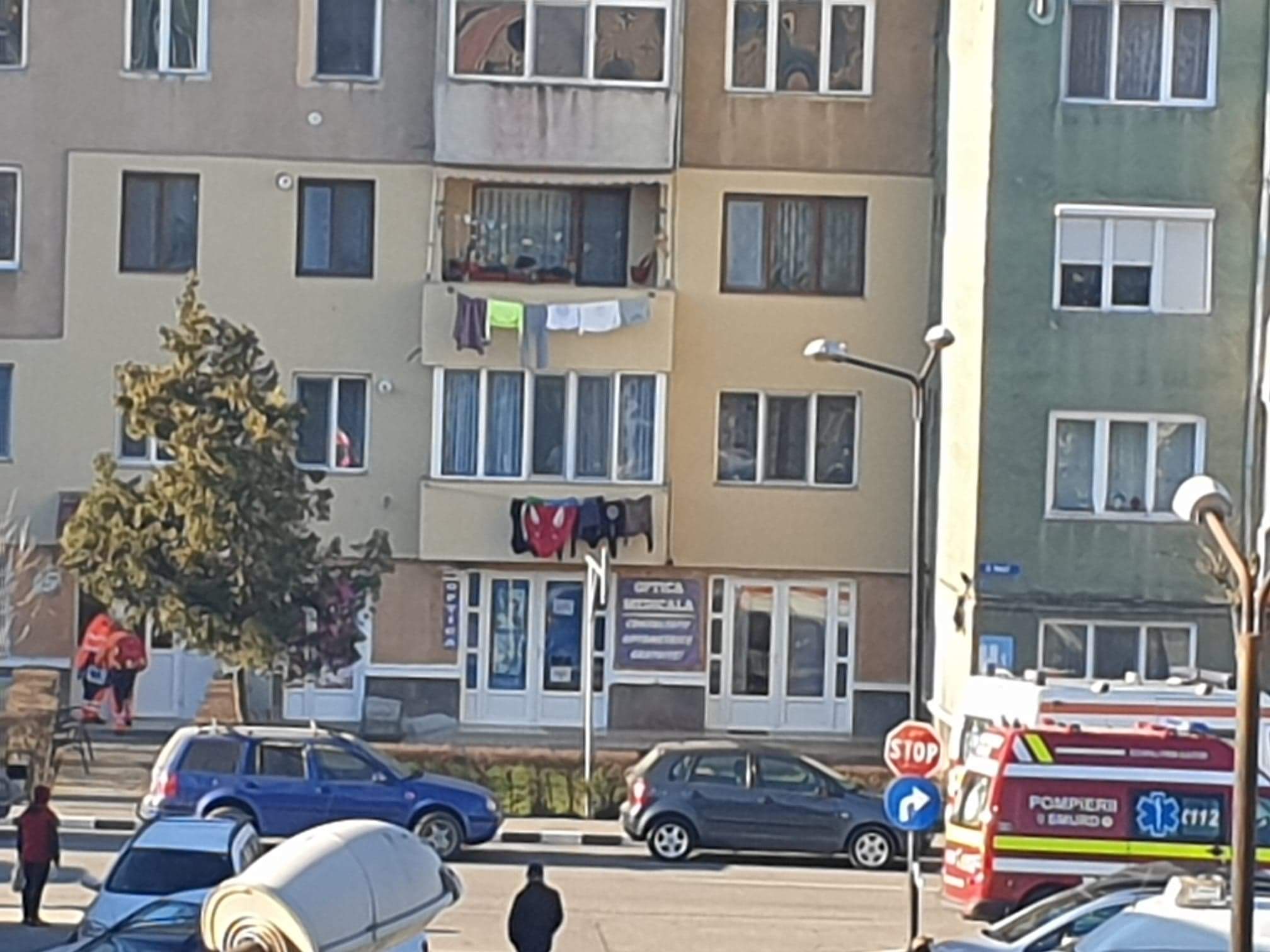 Două echipaje de ambulanță și o mașină de poliție au ajuns rapid, în urmă cu o oră, la un bloc din zona Pieței Centrale Motru.