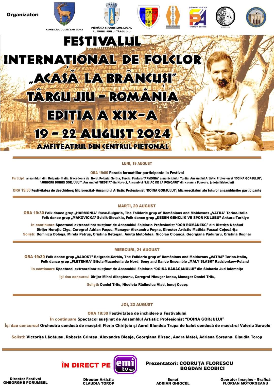 Luni a început la Târgu Jiu Festivalul Internațional de Folclor „Acasă la Brâncuși”.