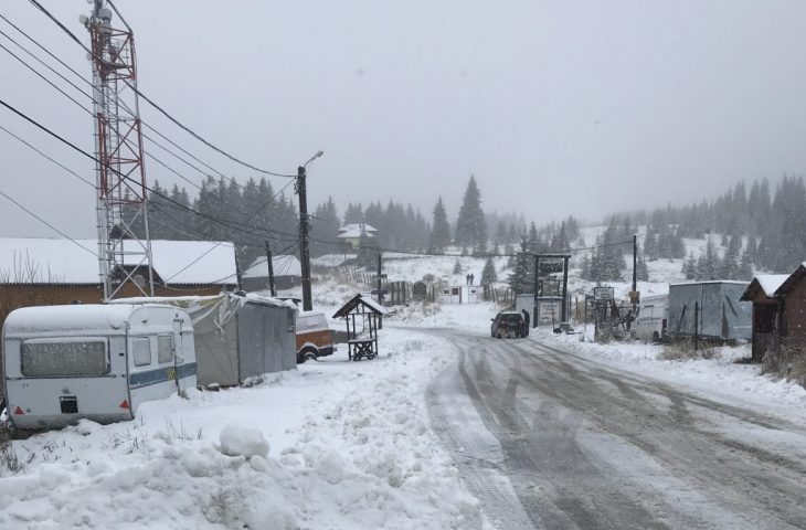 A nins la Rânca. Turiștii care au ajuns, în acest weekend, în stațiune s-au putut bucura de prima zăpadă, stratul fiind de câțiva centimetri.