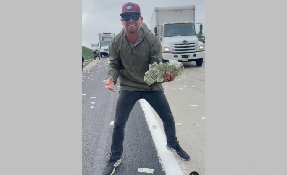 Mai multe persoane au fost filmate alergând după bancnotele de dolari care au căzut dintr-o mașină specială de transport valori. Sacii de bani s-au prăbușit pe drum, după ce ușile camionetei s-au deschis în mers dintr-un motiv rămas necunoscut deocamdată.