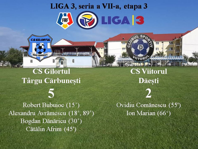 Gilortul Târgu Cărbunești și-a luat revanșa după eșecul drastic de la Copșa Mică. Trupa lui Florin Popete fusese depășită cu 6-0 de satelitul formației de primă ligă Gaz Metan Mediaş, un rezultat puțin anticipat de oficialii echipei gorjene după două victorii consecutive. Din fericire, echipa din Târgu Cărbunești a bifat un nou succes, sâmbătă, pe teren propriu. Gazdele au trecut cu 5-2 de Viitorul Dăești. Robert Bubuioc (15), Alexandru Avrămescu (18-penalty,…