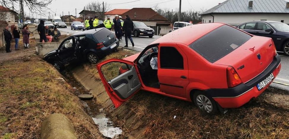Trei persoane, printre care şi un copil, au fost rănite într-un accident rutier care a avut loc astăzi, în jurul prânzului, în localitatea Romaneşti, de pe raza municipiului Târgu Jiu.
