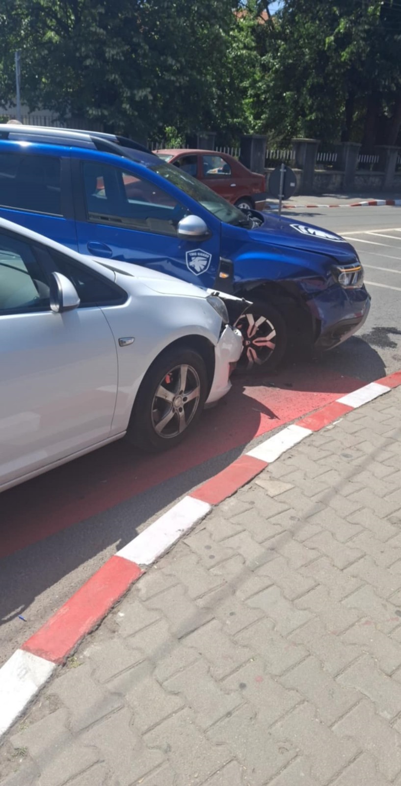 Un accident rutier s-a produs în urmă cu puțin timp în fața Colegiului Național „Spiru Haret” din Târgu Jiu, implicând un autoturism al unei firme de pază și un alt vehicul condus de o femeie.