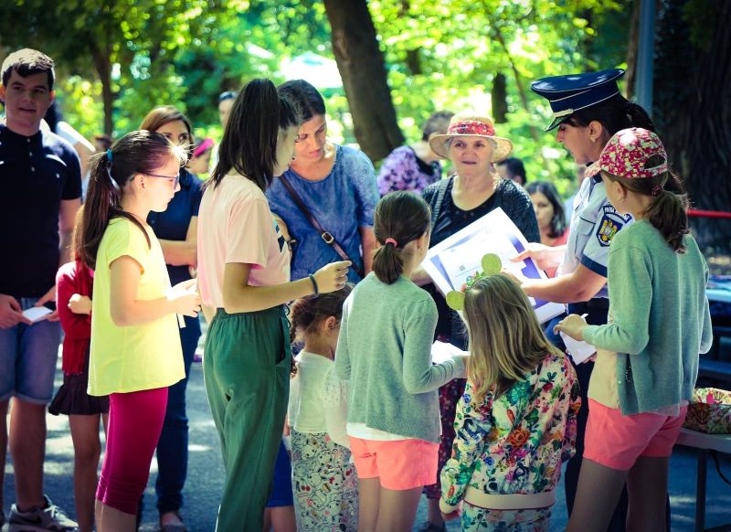 ,,Polițiștii au desfășurat o activitate preventivă cu copiii, părinţii şi bunicii acestora, aflaţi în Parcul Central, din municipiul Târgu-Jiu, participanţi la activităţile desfăşurate de Biblioteca Judeţeană ,,Christian Tell” Târgu-Jiu, în cadrul proiectului «Biblioteca din parc». În prima parte a activităţilor ce au avut ca temă «siguranţa rutieră», copiilor le-au fost prezentate pliante cu indicatoare rutiere, fiindu-le explicate drepturile şi obligaţiile ce le revin în calitate de pietoni, atunci când întâlnesc aceste indicatoare pe stradă.