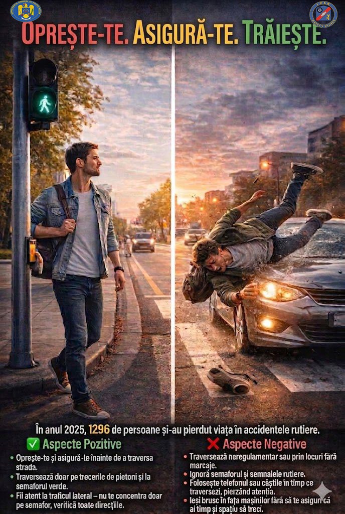 Polițiștii din cadrul Serviciul Rutier Gorj desfășoară, în perioada 23–29 martie, o serie de acțiuni dedicate creșterii siguranței pietonilor și prevenirii accidentelor rutiere.