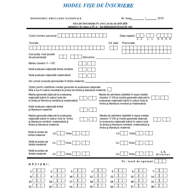 3 – 7 iulie 2019 Elevii de clasa a VIII-a vor completa fişele de înscriere la liceu