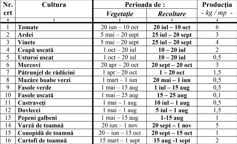 Este realmente util pentru dumneavoastră să cunoașteți aceste date ca să știți când și câtă grădină să înființați, funcție de nevoile proprii și intențiile de comercializare.