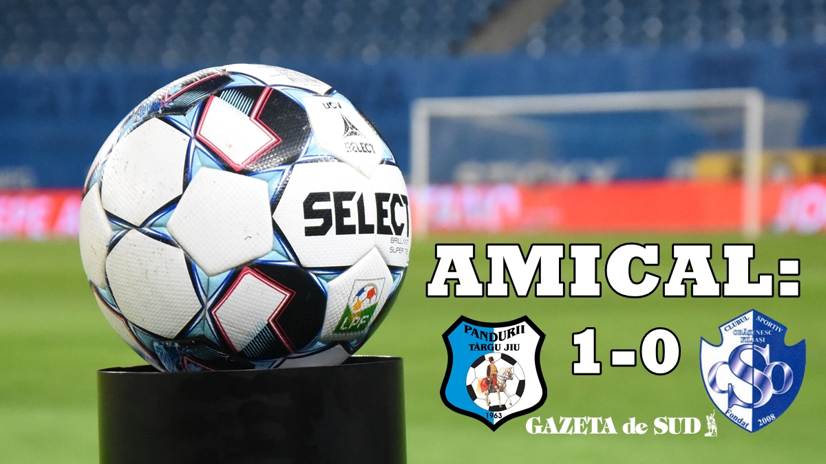 Formația Pandurii Târgu Jiu s-a impus la limită, scor 1-0, în partida amicală susținută sâmbătă, pe teren propriu, în fața echipei CSO Filiași. Diferența a făcut-o un autogol al lui Edi Dina, care a deviat nefericit o minge expediată de Robert Petre.