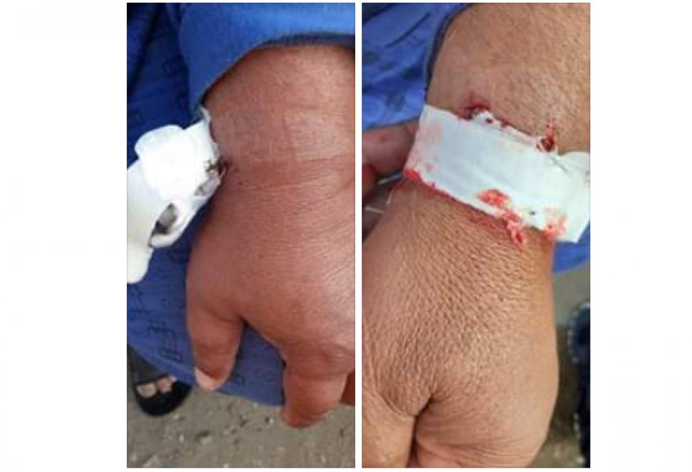 Este anchetă internă la spitalul suport Covid din Târgu Cărbunești, județul Gorj, după ce pe pagina de socializare au apărut imagini cu un pacient externat cu flexura în mână, în jurul căreia erau urme de sânge.
