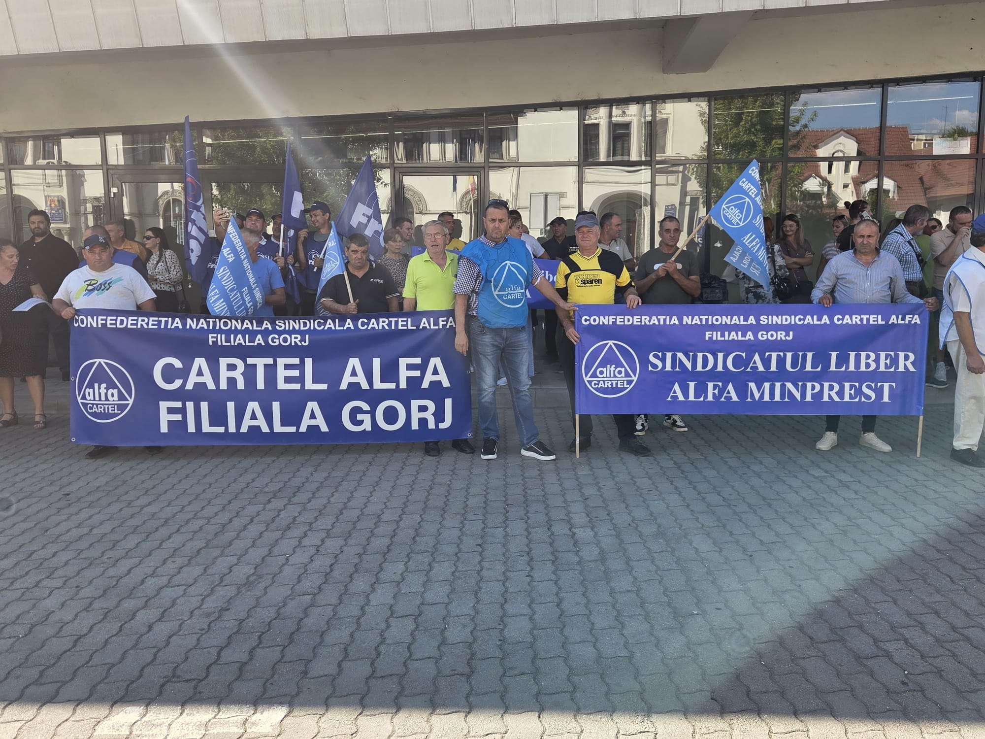 La protestul de miercuri, de la Târgu-Jiu, au fost prezenți și angajați ai Minprest Rovinari, societate în care au început să fie date preavize de concediere, ca urmare a restrângerii activității din minerit.
