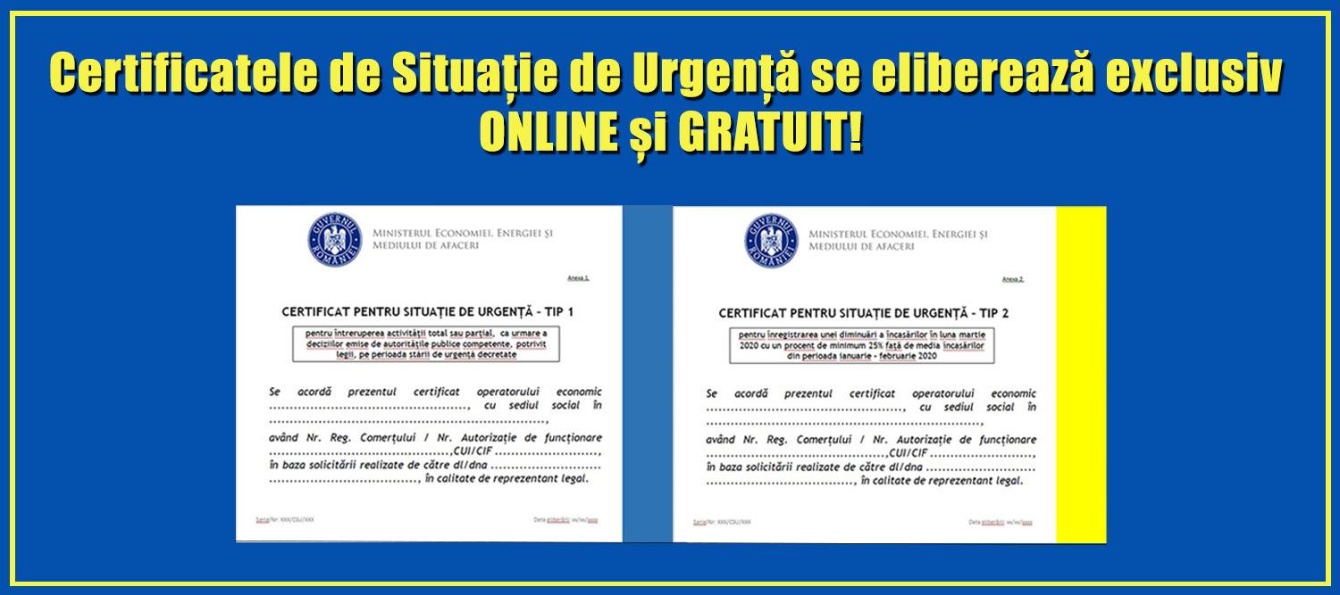 Firmele din Gorj afectate de restricțiile impuse de pandemia de COVID-19 pot cere, de luni, certificatele de situație de urgență. Aplicația dedicată eliberării Certificatelor de Situație de Urgență este activă și poate fi accesată pe platforma http://prevenire.gov.ro/. În Gorj sunt suspendate circa 10.000 de contracte de muncă.