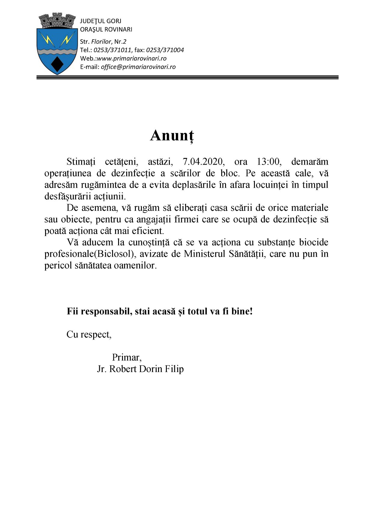 Astăzi, dezinfecție a scărilor de bloc din Rovinari