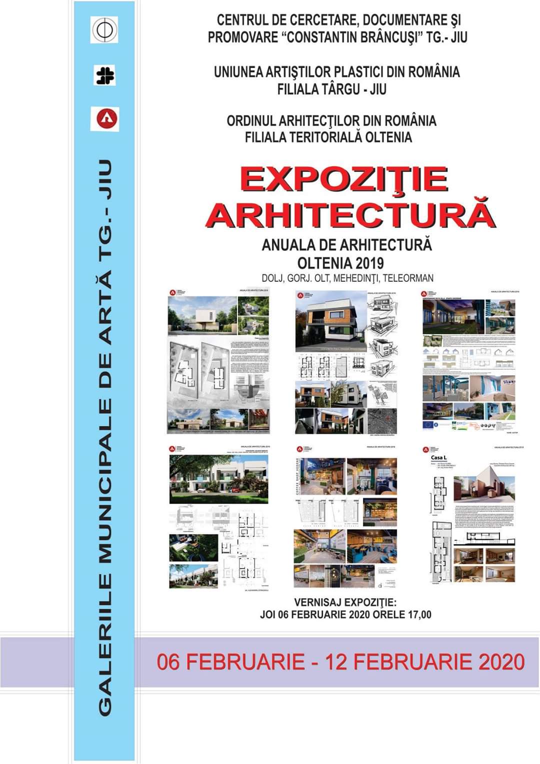 Filiala Târgu Jiu a UAP din România în parteneriat cu Centrul de Cercetare Documentare și Promovare „Constantin Brâncuși”, Ordinul Arhitecților din România- Filiala Teritorială Oltenia, organizează în această după amiază, de la ora 17.00, la Galeriile Municipale de Artă din Târgu Jiu, Strada Traian nr. 27, vernisajul expoziție „Anuala de arhitectură Oltenia 2019 Dolj, Gorj, Olt, Mehedinți, Teleorman”.