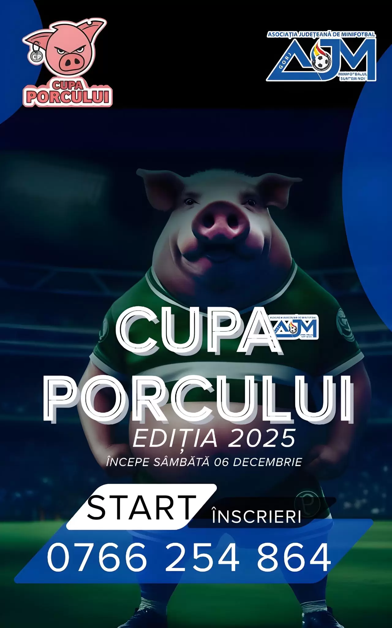 Asociația Județeană de Minifotbal Gorj a dat oficial startul înscrierilor pentru Cupa Porcului 2025. Competiția este organizată în parteneriat cu Complexul Dolce Vita din Târgu-Jiu, sub egida Federației Române de Minifotbal.