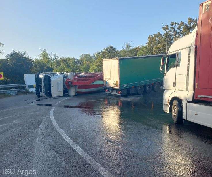 O autobetonieră s-a răsturnat miercuri dimineaţă pe DN 7, în zona localităţii Cotmeana, a anunţat Inspectoratul de Poliţie Judeţean Argeş.