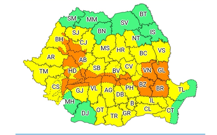 Fenomene vizate: ploi însemnate cantitativ, local instabilitate atmosferică temporar accentuată