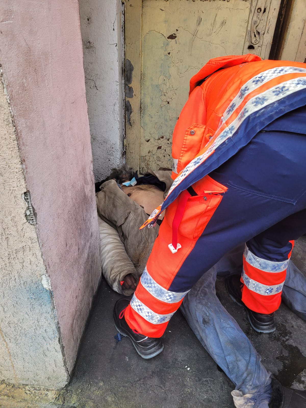 Câțiva cetățeni au văzut că bărbatul era întins pe jos, fără suflare, în spatele unui magazin, și au sunat la 112.