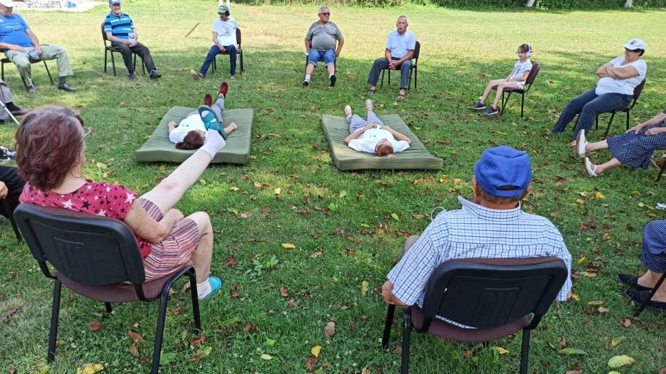 Un profesor din localitate, înscris în acest proiect, s-a oferit să-i învețe pe bătrâni câteva exerciții pe care aceștia să le facă zilnic pentru a-și păstra un tonus bun.