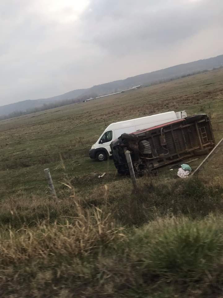 Un eveniment rutier a avut loc în această dimineață pe raza comunei Bengesti-Ciocadia, o dubă ieșind din decor și răsturnându-se în afara părții carosabile. Din fericire nu s-au înregistrat victime ci doar pagube materiale
