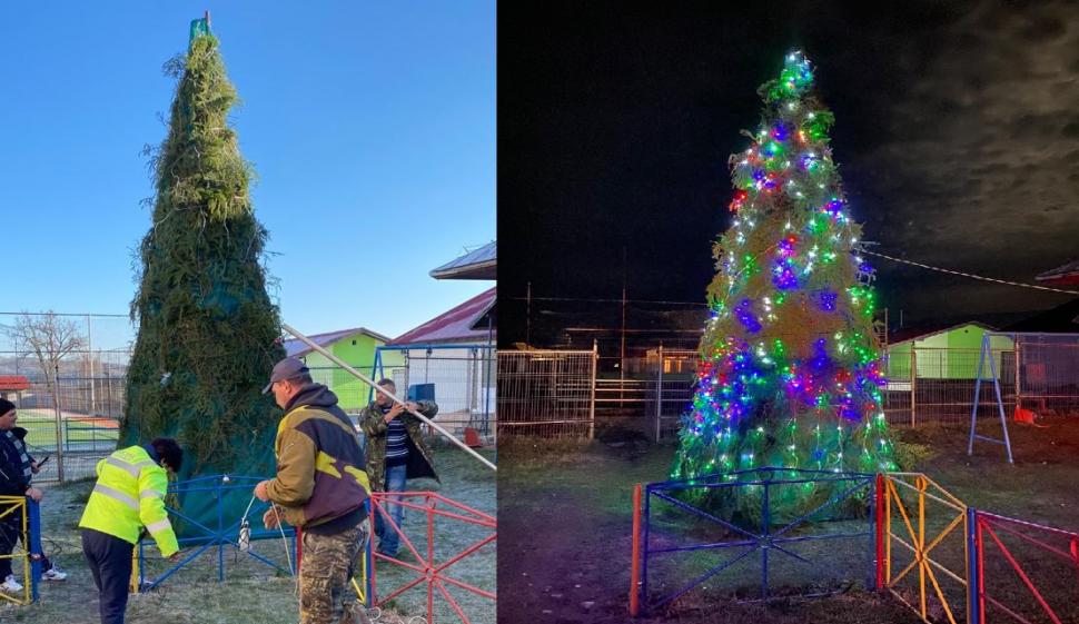 ”Avem în curtea primăriei construit un brad de criză. L-am construit din resurse proprii fără cheltuieli financiare din partea primăriei. Seara arată minunat, face…
