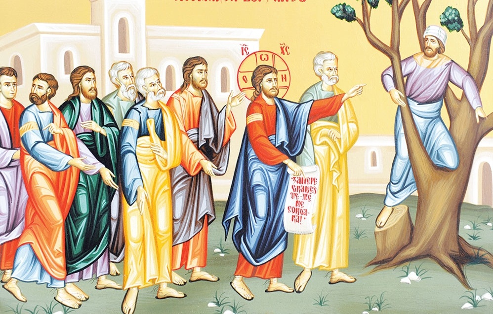 În Duminica a 32-a după Rusalii (a lui Zaheu); Ap. 1 Timotei 4, 9-15; Ev. Luca 19, 1-10, la Sfânta şi Dumnezeiasca Liturghie, avem dinaintea ochilor minţii şi a urechilor cugetului ascultător, ceea ce am putea denumi o întâlnire neverosimilă a Mântuitorului Iisus Hristos cu un vameş, Zaheu, în oraşul Ierihon, când vom putea înţelege că atât de rodnică a fost întâlnirea dintre Mântuitorul Iisus şi Za¬heu, încât dintr-un om păcătos, Zaheu devine om drept, deci, atât…