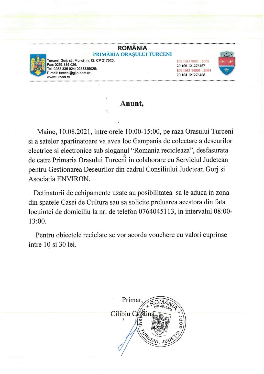 Campanie de colectare a DEEE-urilor, astăzi, la Turceni