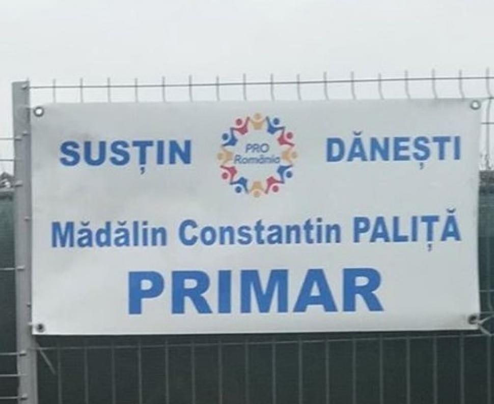 Mădălin Paliță, candidatul Pro România din comuna gorjeană Dănești, s-a pus pe treabă, deși mai sunt câteva luni până la alegerile locale. Acesta are deja bannere prin care informează că este candidat la funcția de primar, pe care le-a amplasat în localitate.