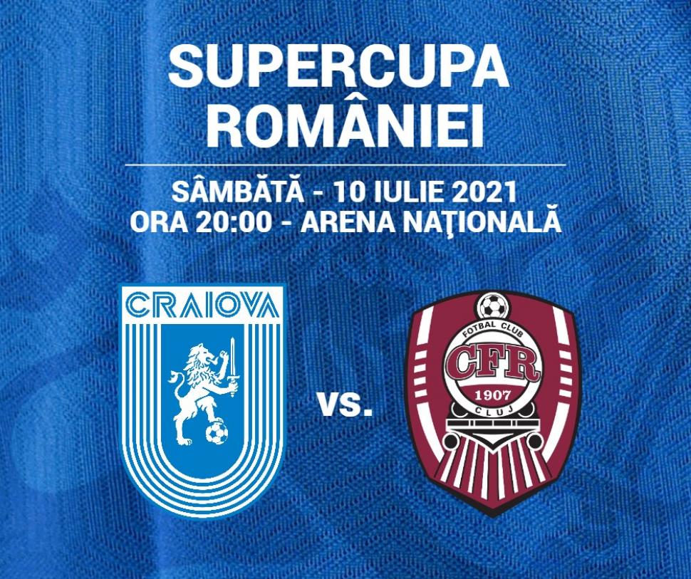 Federația Română de Fotbal a anunțat că au fost puse în vânzare biletele pentru meciul dintre CFR Cluj și Universitatea Craiova, din Supercupa României. Meciul se va disputa sâmbătă, 10 iulie, de la ora 20:00, pe Arena Națională.