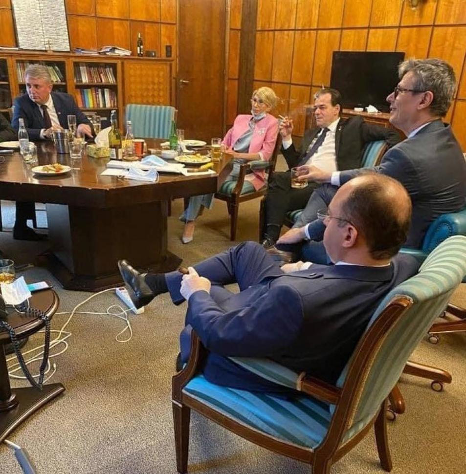 O fotografie în care apare premierul Ludvic Orban cu ţigara aprinsă în mână şi mai mulţi miniştri care au în mână pahare sau ţigări este distribuită intens pe Facebook. Fotografia a fost făcută într-unul dintre birourile de la Guvern, iar cele mai multe comentarii ale utilizatorilor sunt negative.